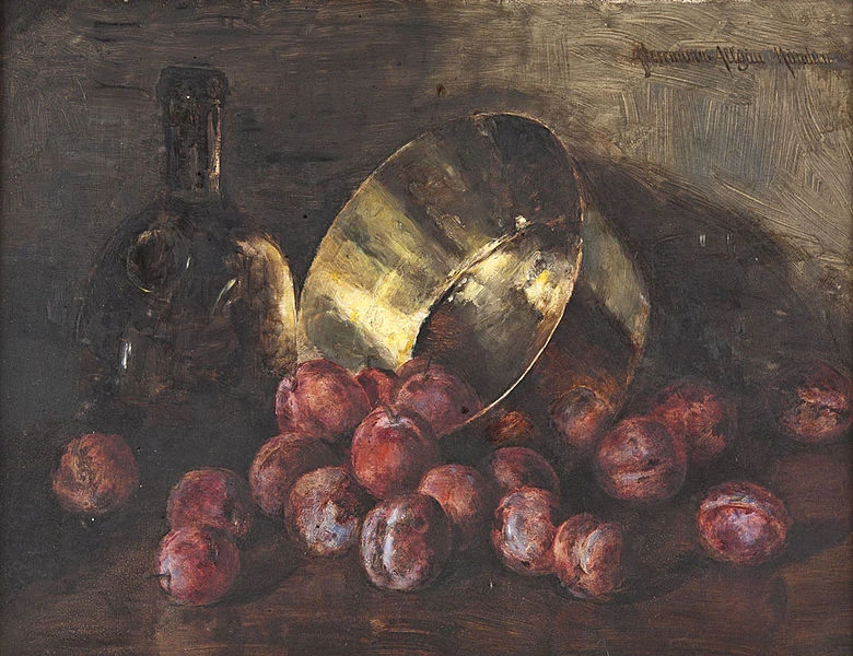 Stillleben mit Pflaumen, by August Herrmann-Allgäu (1852–1916). Courtesy Wikimedia Commons.